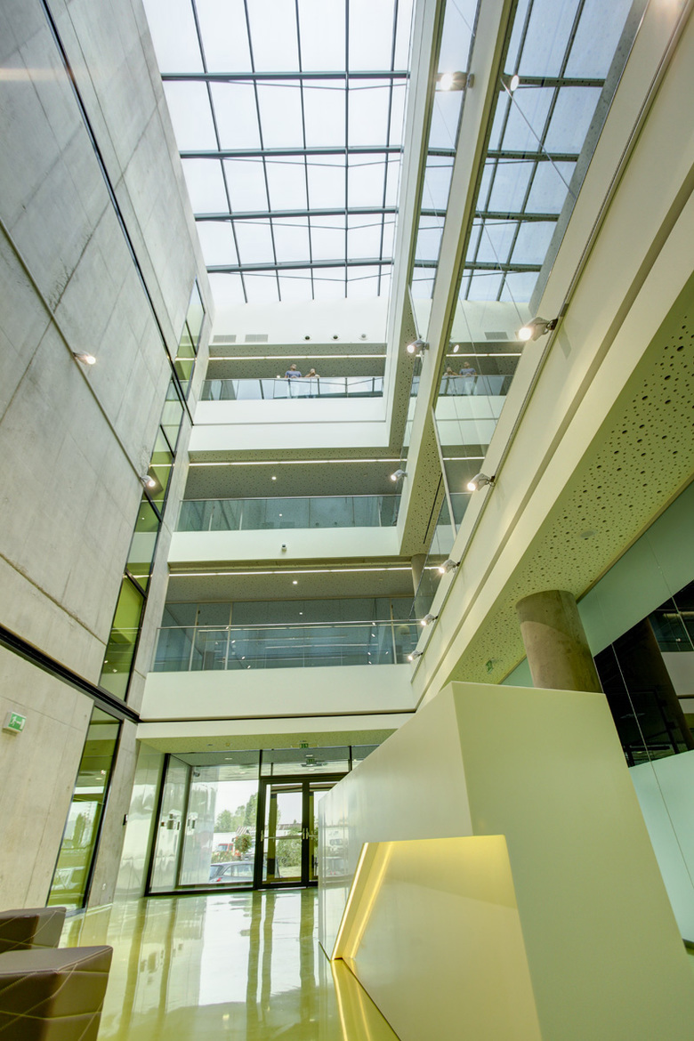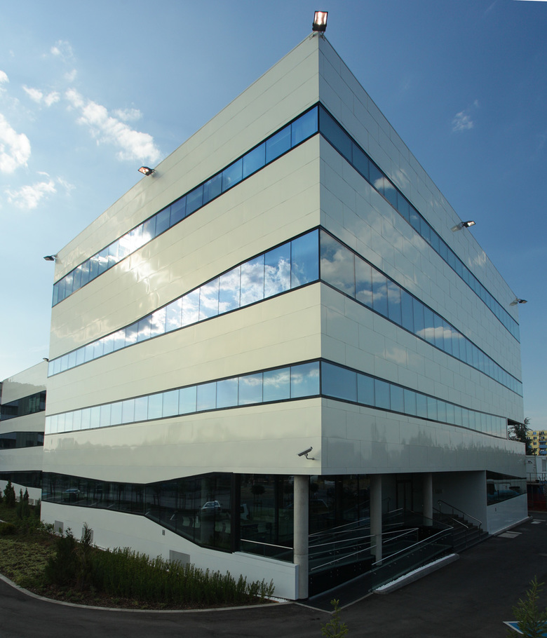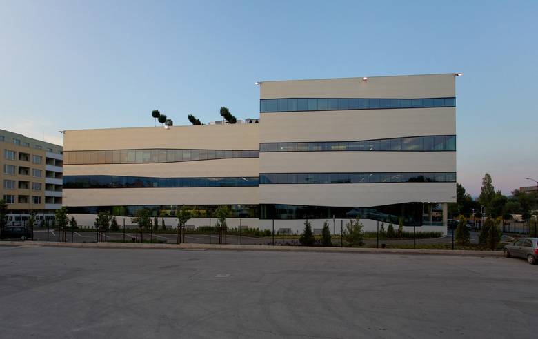 Für die Firma Centillion, einem bulgarischen Hersteller von elektronischen Bauteilen, entwarf DIN A4 Architektur das neue Betriebsgebäude für Administration und Produktion in Sofia. Mit seiner innovativen Ausbildung soll das Gebäude die Kompetenz der Firma zum Ausdruck bringen und zu einem "landmark" werden. Aufgrund der Produktionsanforderungen ist das Objekt mit Luftdruck-, Vakuum- und Stickstoffanlage ausgestattet, eine hochkomplexe Gebäudetechnik ist das Resultat. Vor Ort wurde ein Generalunternehmer für die Ausführungsplanung und ihre Umsetzung beauftragt. DIN A4 Architektur obliegt die künstlerische Oberleitung, die Qualität aller Arbeiten wird präzise vorgegeben und überwacht.