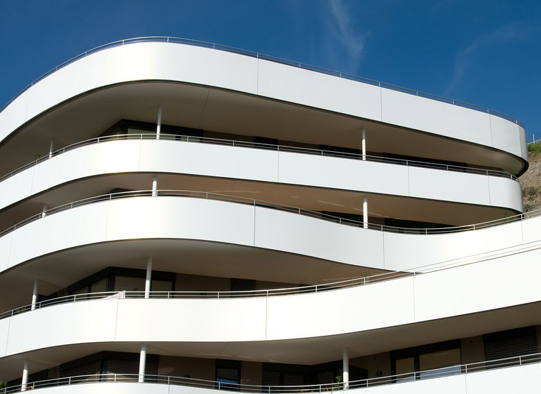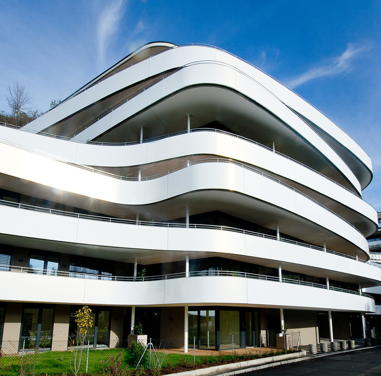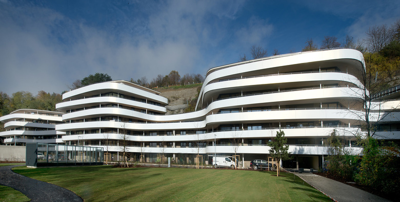 Die aufregende Architektur mit vielen Grundrissvarianten und großzügigen Sonnenterrassen sorgt für privates Urlaubsfeeling, das optimale Konzept versieht alle 140 Wohnungen mit einem Südanteil und garantiert dadurch einzigartige Belichtungsverhältnisse.