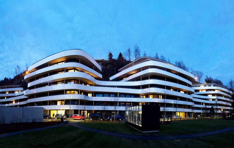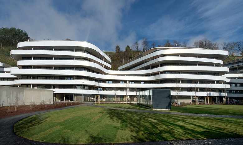 Einmaliger Panoramablick, perfekte Infrastruktur mit Schulen und Einkaufsmöglichkeiten, aber komplizierte Hanglage: Die Bebauung des Sonnenhangs in der Höttinger Au stellt schon seit den 1990ern eine große Herausforderung für die unterschiedlichsten Architekturbüros dar. Das zweistufige Wettbewerbsverfahren konnte DIN A4 Architektur für sich entscheiden. Im anschließenden kooperativen Dialog, gemeinsam mit der Jury zeigte das Team, wie es möglich ist, aus den schwierig scheinenden Gegebenheiten einen lebenswerten Wohnraum zu schaffen.