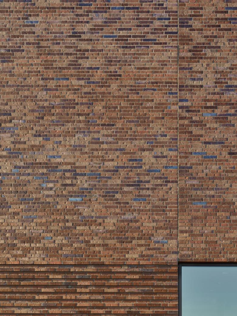 Die Fassade besteht aus einem durchgefärbten Ziegel im wilden Verband und verleiht dem Haus Beständigkeit und Charakter. Innen dominieren Sichtbeton, Linoleum und Feinsteinzeug – Materialien, die alltäglichen Belastungen gewachsen sind und zugleich eine ruhige, zurückhaltende Atmosphäre schaffen. Die Technik bleibt im Hintergrund – aber immer wirksam: Mit Wärmerückgewinnung, effizienter Lüftung und gezielter Klimatisierung werden Ressourcen geschont und Komfort sichergestellt.