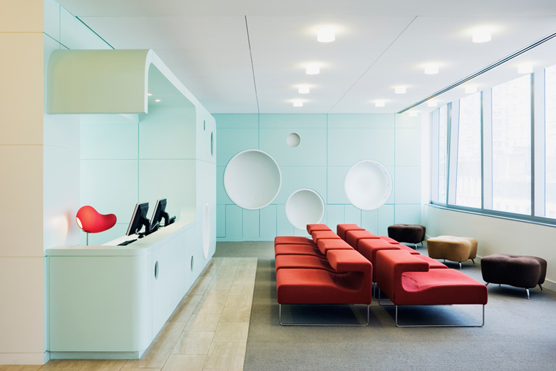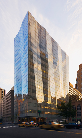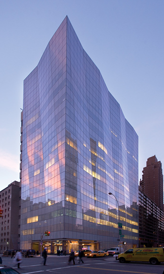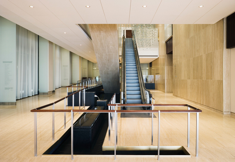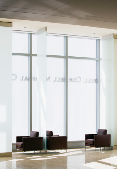 The design of this world-class ambulatory care creates an environment that promotes health and healing, while recognizing the stature of the College’s eminent physicians and its state-of-the-art clinical services. The building integrates itself into the everyday fabric of the City and provides an elegant, reassuring and welcoming face for healthcare. Sheathed entirely in glass, which was selected for its open, transparent qualities and experiential richness, the building symbolizes the progressive identity of the institution. The water white ceramic fritted glass curtain wall, which is cut into long vertical facets, veils the building, generating a softness and depth for the building’s undulating reflective surface. From the interior, this translucent skin subdues the hustle and bustle of the city and gently shapes the flow of natural light. Accessibility and ease-of-use are supported by the incorporation of valet parking, and a high level of personalized service typically equated with a fine hotel. A series of water features, which enhance the sense of calm, and in combination with the diffused natural light, ease patient stress and anxiety, characterizes the main lobby. Natural materials, including wood, travertine and Cor-Ten steel, constitute the lobby’s material palette.