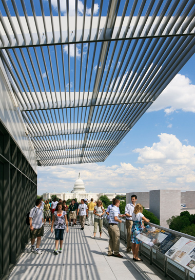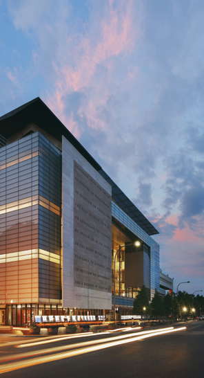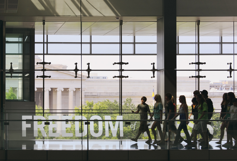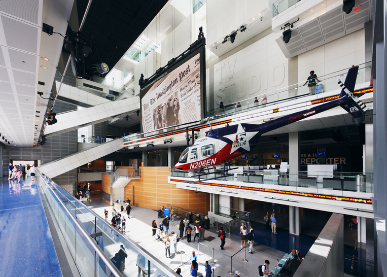 This multi-use building has three principal parts: a museum dedicated to journalism and free speech, which is intended to be a visually and intellectually accessible stage for the public to view, learn about and interact with the process of news making, offices for the Freedom Forum Foundation, and residences. The guiding principles of the Freedom Forum – free press, free speech and free spirit for all people – and the site – midway between the capitol and the White House on Pennsylvania Avenue – were generators of the design concept for the Museum. A 5-story atrium organizes the Museum experience. Used for public ceremonies and celebrations, this volume serves as the foyer for the Forum, the primary public assembly space and central circulation core. Visitors circulate around and through this volume, constantly interacting with the building, its exhibits and with other museum-goers.