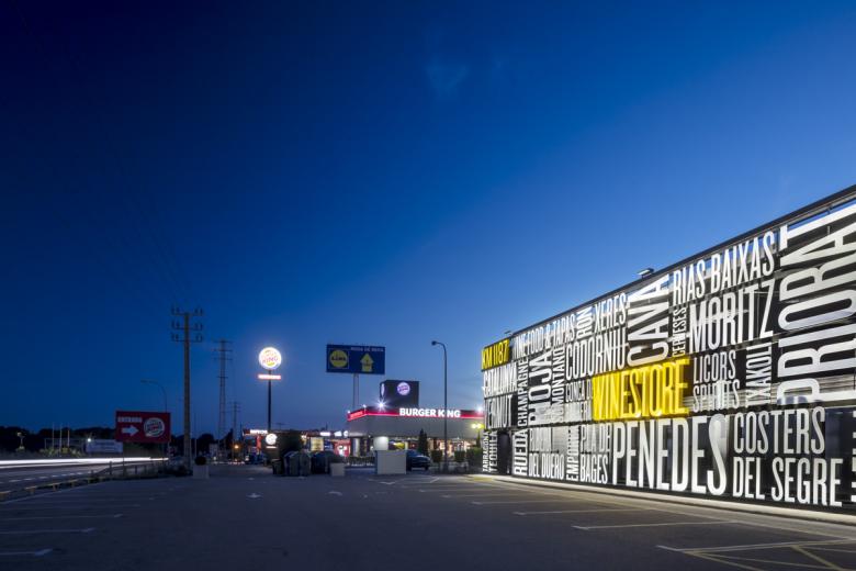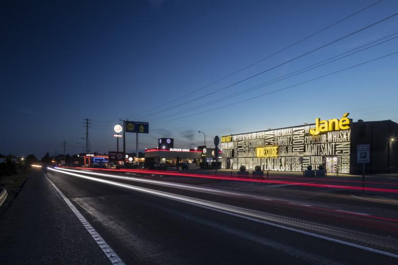 With the capacity to store and exhibit more than 10,000 referents of the best wines, distillates, and gourmet products, the Jane liquor store is one of the landmarks for good drinking enthusiasts. This great diversity of products almost with a collection character is precisely what was sought to materialize in the great main facade. This was also designed to generate a great visual impact that managed to capture the attention of the neighboring highway, inviting visitors to discover and experience the treasures that are held inside. The same visual impact has a lasting effect that is expressed at night through a programmable LED lighting system integrated with a chromatic game that makes Jané Winestore the beacon of the nights in Comarruga.