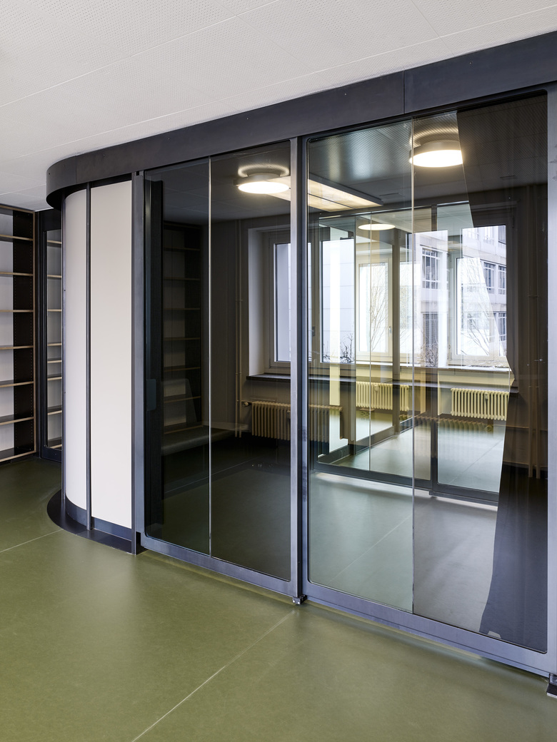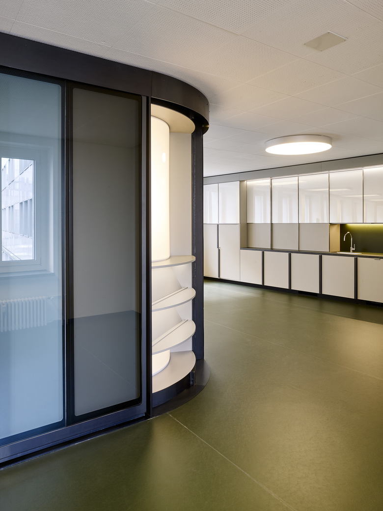 Das zeitgemässe Büro bietet Raum für Austausch und Begegnung aber auch für Konzentration und Rückzug. Weder das ausschliessliche Zellen- oder Gruppenbüro, noch das reine Grossraumbüro wird diesem Anspruch gerecht. Es überwiegen die Nachteile von Vereinzelung im einen, und störende Ablenkung (Lärmproblem) im anderen Fall. Das sogenannte Multi-Space-Konzept setzt die konträren Anforderungen von kommunikativer Begegnung und konzentriertem Rückzug räumlich um - durch eine Kombination aus kollektiven Arbeits-, Besprechungs- und Pausenzonen, sowie individuellen Arbeitsplätzen -.