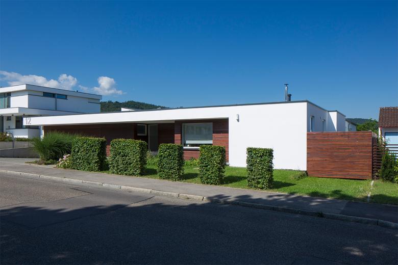 Das Wohnhaus ist konsequent ökologisch umgesetzt. Holzrahmenbauweise mit Zellulosedämmung, begrüntes Flachdach mit Regenwasserzisterne, Holzfenster und eine Erdwärmepumpe mit Tiefenbohrung sind die markanten Parameter in der Umsetzung. In der architektonischen Gestaltung war das Bestreben, Überflüssiges zu eliminieren, Materialien sorgfältig auszuwählen und rein funktional einzusetzen. Die Reduktion auf wenige Materialien verleiht dem Baukörper eine angenehme Ruhe und Leichtigkeit.