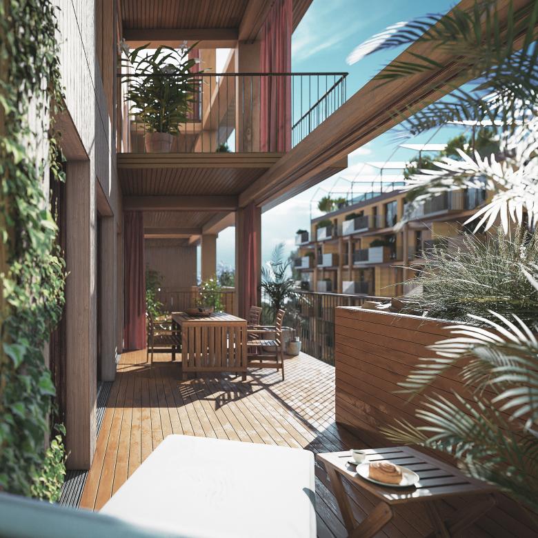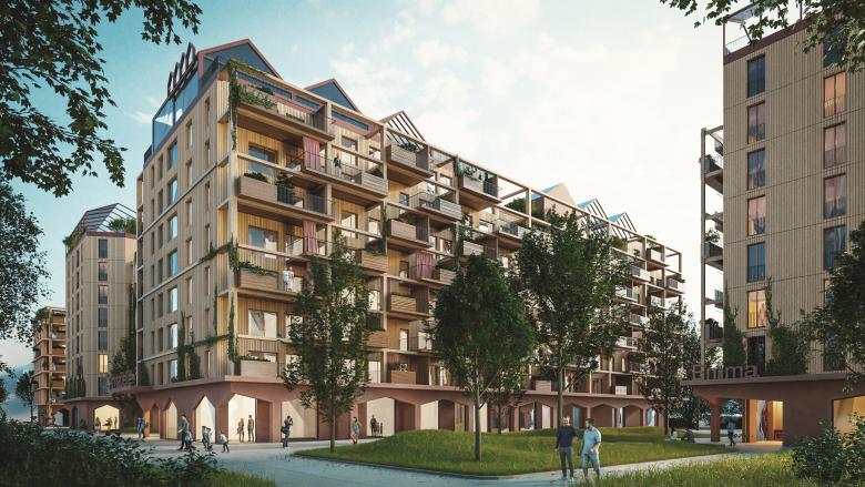 ATT - Rote Emma, Holz-Hybrid-Wohnbau mit Urban-Farming-Dachlandschaft