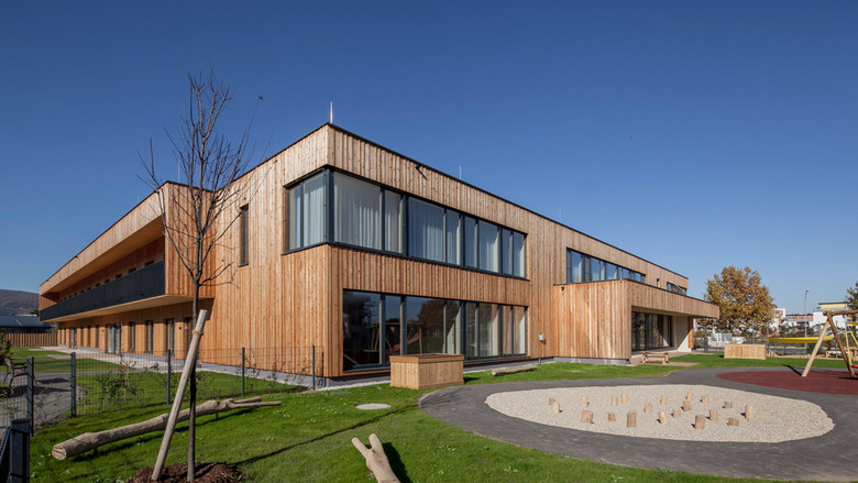 In dem Komplex inmitten eines großen Gartens ist auch ein Kindergarten untergebracht. Synergiegewinn: Das Projekt bringt die unterschiedlichen Nutzer aller Altersklassen zusammen.