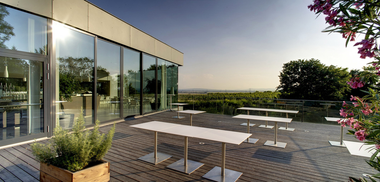 Das gesamte Gebäude ist barrierefrei begehbar. Über Rampen gelangt man in den Verkostungsraum im Obergeschoß sowie in die Seminar- und Lagerräume im Untergeschoß. Beide Stockwerke sind mit einem behindertengerechten WC ausgestattet.