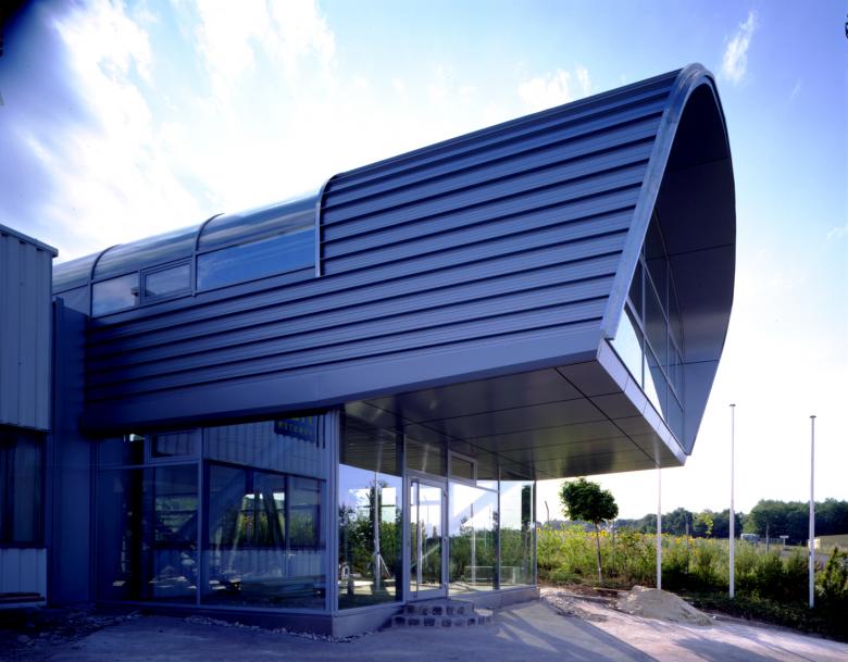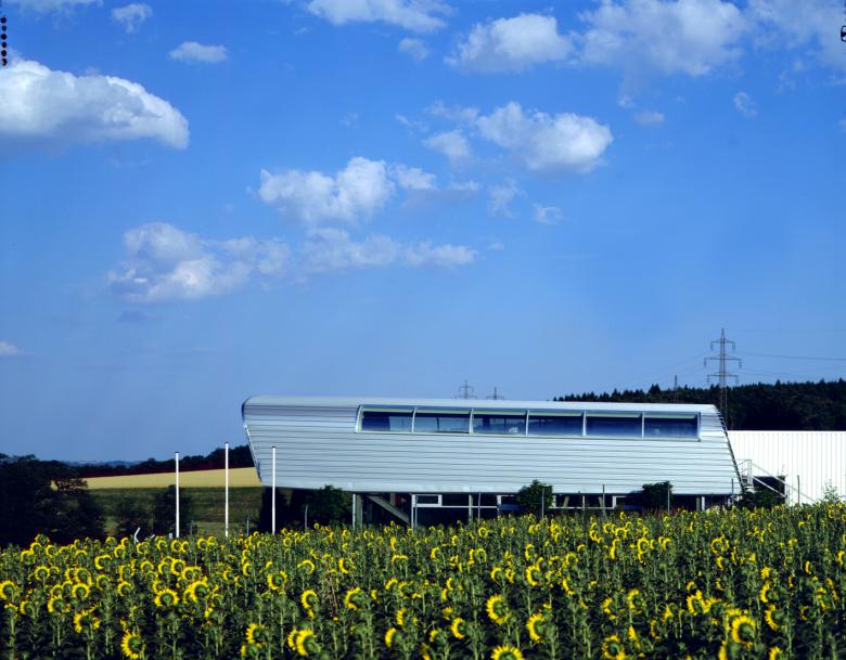 Der im Obergeschoß weit auskragende Neubauteil steht in der Beurteilung der Jury nicht nur für eine hohe Qualität der architektonischen Sprache, einen innovativen Umgang mit Materialien und den entsprechenden Detaillösungen, eine räumliche Konzeption mit innerer Logik und fast dramatischen Ausblicken, sondern auch dafür, wie ein Gebäude mit starkem eigenständigen Ausdruck einem Ort in einer amorphen Gewerbeansiedlung Identität verleihen kann.