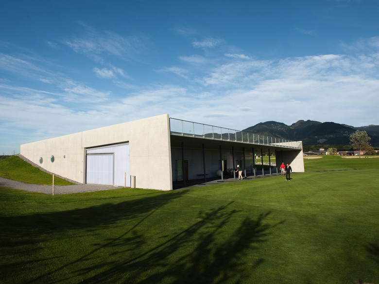 Nach seiner Fertigstellung präsentiert sich die neue eingeschossige Stahlbetonkonstruktion als ein im Norden ins Erdreich eingegrabenes Volumen, das sich nach Süden zur Abschlag-Range hin öffnet. Das Dach ist komplett begrünt, die Gebäudeform nach Süden hin leicht abgerundet. Die Abschlagzone ist überdacht und verfügt über elf gedeckte Abschlagplätze. Weitere Plätze sind daneben im Freien angeordnet. Der Boden ist mit Tartan belegt. Die zurückgesetzte Fassade wurde mit transluzenten Polycarbonatplatten ausgestattet, die es erlauben, die dahinter liegenden Räumlichkeiten natürlich zu belichten. Situiert sind hier die Garderobe, Lagerflächen und Toiletten, ein Besprechungszimmer sowie der Trainerbereich. Eine weitere - nachgeordnete – Raumschicht ist den persönlichen Boxen der Spieler vorbehalten, die von diesen gemietet werden können. Ursprünglich sollte auch die Dachebene als Abschlagplatz genutzt werden. Aus Sicherheitsgründen musste dieser Plan jedoch fallen gelassen werden. So fungiert das Dach heute als Aussichtsterrasse mit schönem Blick nach Süden.