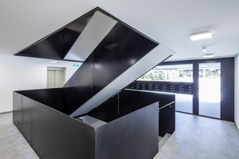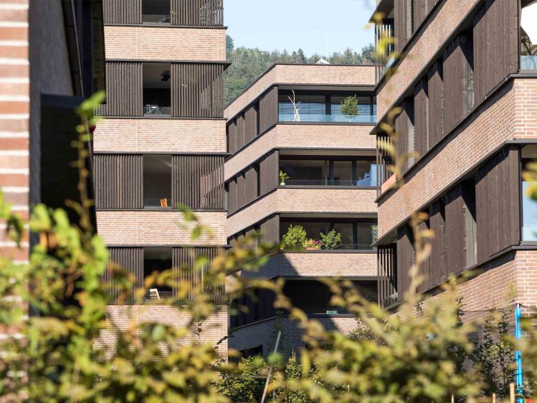 Das Grundstück liegt am See, mit Blick zum Pfänder und auf Landschaftskorridore beidseits der Anlage. Die Architekten denken den Entwurf von außen nach innen, vom Städtebaulichen bis zu den Grundrissen. Mehrere Ebenen werden überlagert: Dreizehn Häuser, zur Grundstücksmitte hin höher werdend, als Vierer- bzw. Dreier-Cluster angelegt und in unterschiedlichen Hierarchien jeweils um einen Hof gruppiert. Aus dieser Konstellation wird der Siedlungsraum gebildet und ergibt sich die Gestaltung der Gärten, ebenfalls in hierarchischen Schichten: außen die freien Wiesen, nach innen hin eine immer dichter werdende Struktur aus halböffentlichen Plätzen, Spielflächen, Gemeinschaftsgrün und privaten Gärten. Dazwischen Hecken und Sträucher und niedrige Obstbäume, die wiederum eine landschaftliche Verbindung zum Dorf herstellen.