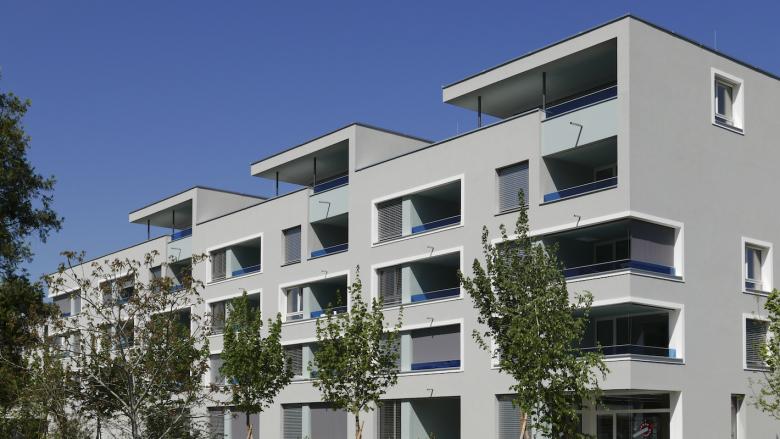 Für das Gelände einer ehemaligen Spinnerei an der Ill und ausgehend von einem Nahversorgungszentrum wurde ein städtebaulicher Masterplan entwickelt: Längs- und Punktbauten wechseln einander ab, die Finger der Längsbauten zeigen auf einen zentralen Platz, es entsteht eine Verflechtung von Grünräumen, befestigten Bereichen und Wegen, die das Areal über seine ganze Länge erschließen. Die Sockelgeschosse haben größere Raumhöhen als die Wohnungen darüber, um Flexibilität zu gewährleisten. Hier können auch Geschäfte oder Cafés sein – mit jeweils einem direkten Zugang vom leicht erhöhten Vorgarten auf den Platz. Die Wohnanlage ist auf langfristige und veränderbare Nutzung ausgelegt, die städtebauliche Konfiguration zielt ebenso darauf ab wie die dauerhafte Bauweise aus monolithischen Ziegeln.