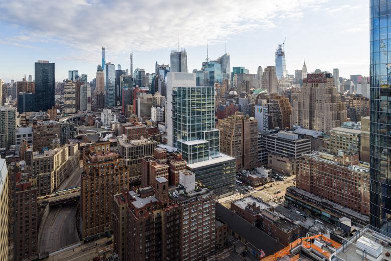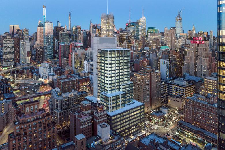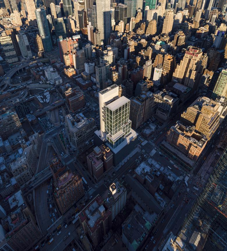 Hudson Commons in New York is a repositioning project by Kohn Pedersen Fox. KPF renovated the 8-story ware house and designed a new 17-story building to rise from the podium.