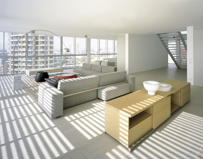 The design of the building has been developed to incorporate passive environmental strategies to create internal spaces with year round comfort for the occupants together with low energy consumption. To the north and east the deeply recessed balconies shade glazing to minimise heat gain, while allowing winter sun to penetrate living areas. Western elevations are shaded by the horizontal and vertical louvres. All units have large areas of floor to ceiling glazing allowing very high levels of natural daylighting. The lift lobbies are also naturally lit with floor to ceiling glazing, with artificial lighting not required until after sunset.