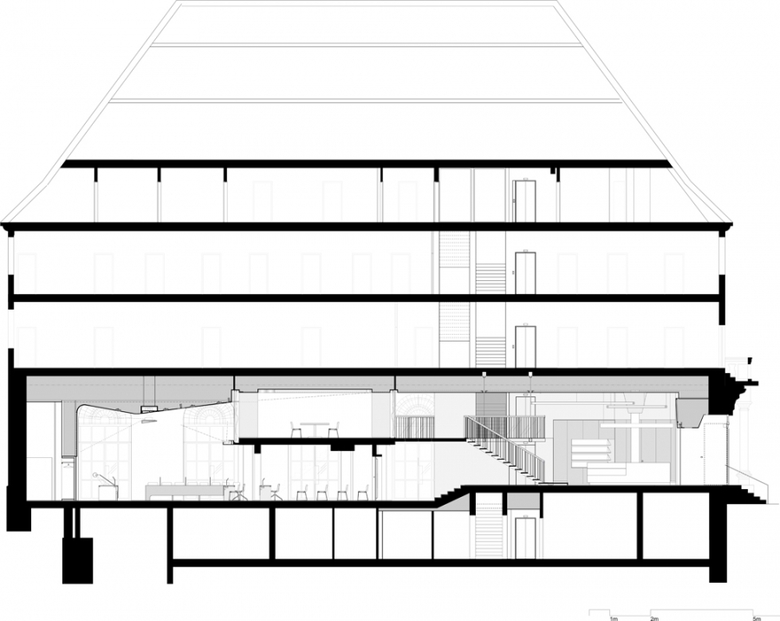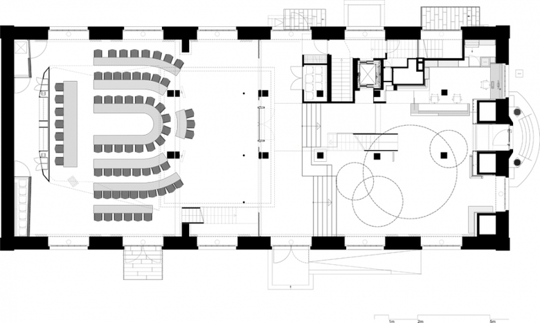 Vom Foyer mit seinen historischen Holzsäulen führt eine Treppe hinauf in den Trausaal. Dessen schwebender Einbau und die darunterliegende Front zum Plenarsaal sind aus Glas, sodass der Raum als Ganzes erfassbar bleibt. Den Plenarsaal prägen das geschwungene Deckensegel und die auf Sichtkontakt optimierte Sitzanordnung, die eine konstruktive Kommunikationsatmosphäre fördert.