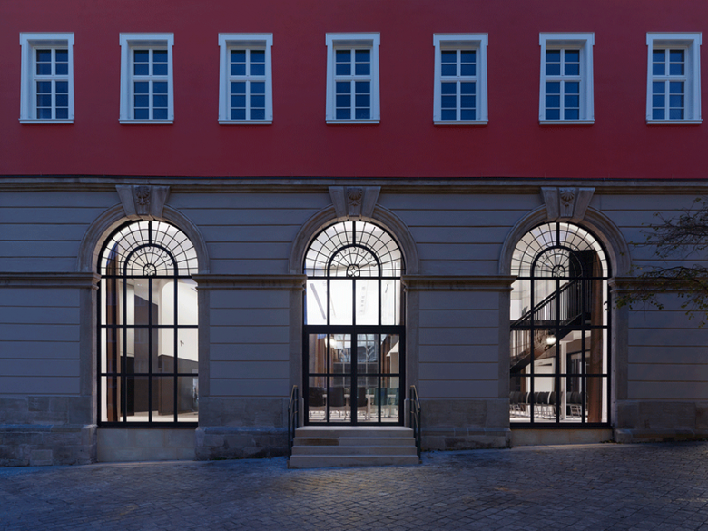 Das 1726-30 erbaute Rathaus dominiert als Solitär den Marktplatz und ist das Wahrzeichen der Stadt Schorndorf. In einer ersten Umbauphase wurden zunächst die Obergeschosse des Hauses energetisch und denkmalgerecht saniert. In der zweiten Bauphase folgten die Neugestaltung der öffentlichen Bereich im Untergeschoss sowie der Fassade. Hauptidee der Gestaltung war es, den historischen Raum möglichst sichtbar zu machen. Transparenz in allen Bereichen steht aber auch für ein bürgernahes Demokratieverständnis und erinnert an die ursprüngliche Funktion des Untergeschosses als Marktplatz.