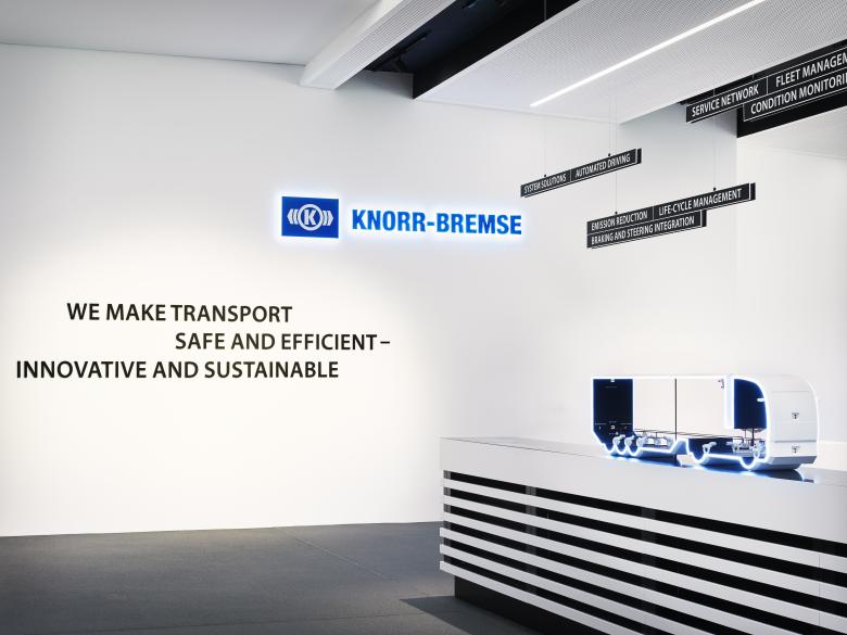 Das zweigeschossige Forum ist in drei Bereiche gegliedert: in das Atrium als Ort des Dialogs für Veranstaltungen und Markenpräsentationen sowie in zwei weitere, direkt daran anschließende, eingeschossige Ausstellungsbereiche. Deren inhaltliche Gliederung folgt der neuen Einteilung in »Mensch« und »Güter« als die zentralen Transportthemen von Knorr-Bremse. Die beiden Unternehmenssparten »Schienenfahrzeuge« und »Nutzfahrzeuge« werden in der aktuellen Präsentation somit zusammengeführt. Das betont wichtige Synergien und macht vor allem auch die umfassende Technikkompetenz von Knorr-Bremse deutlich.