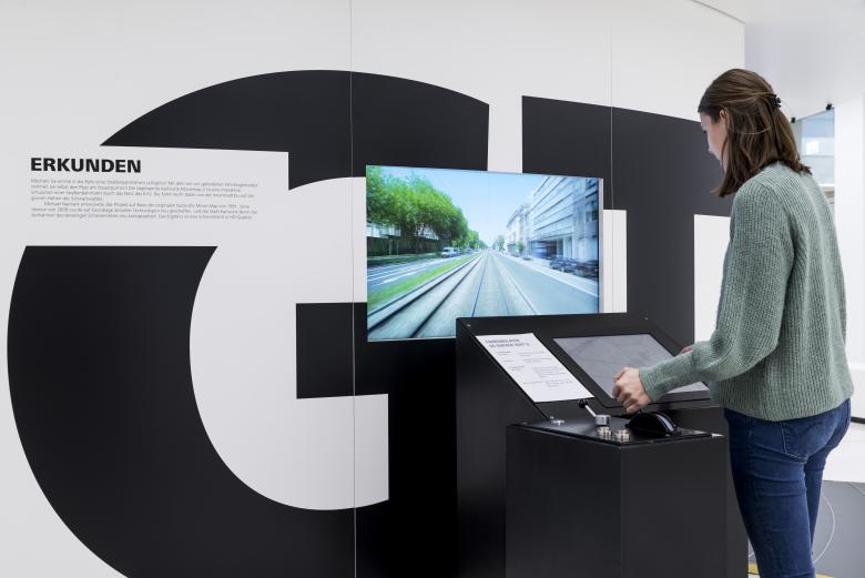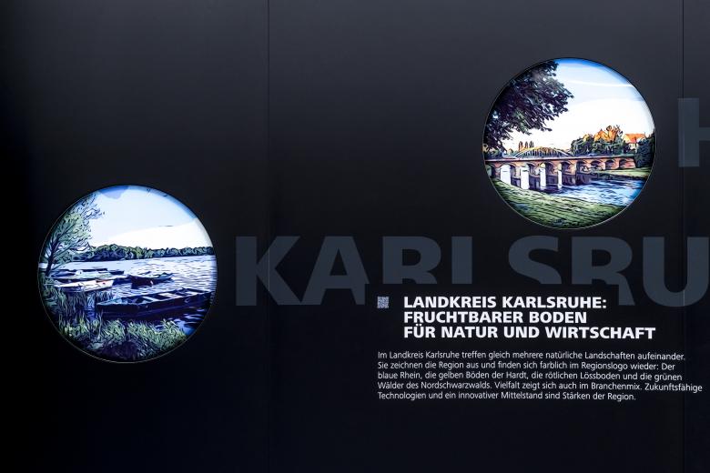 Die Erlebniswelt nimmt das Motiv des Kreises wieder auf: Im Innern des runden Raums schaffen Boden- und Wandprojektionen ein facettenreiches Bild des KVV mit seinem weitverzweigten Netz aus Schienen und Straßen - und laden dazu ein, die Region und ihre Orte in der Realität gemeinsam mit dem KVV zu erkunden. Während der Innenraum des Kreises autoaktiv bespielt wird, bietet die Außenwand interaktive Stationen und damit weitere Einblicke in den Karlsruher Verkehrsverbund. Stellvertreterobjekte zeigen vertiefende Informationen zum Thema Mobilität, Mitarbeiterinnen und Mitarbeiter aus unterschiedlichen Bereichen des KVV geben sehr persönlichen Einblicke in ihre Arbeit, ein Fahrsimulator lässt die Besucherinnen und Besucher in den Führerstand einer Straßenbahn schlüpfen.