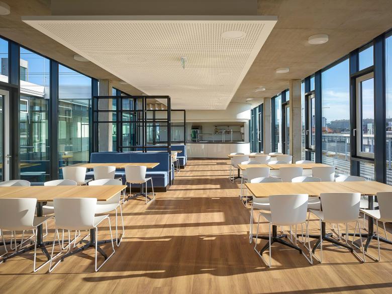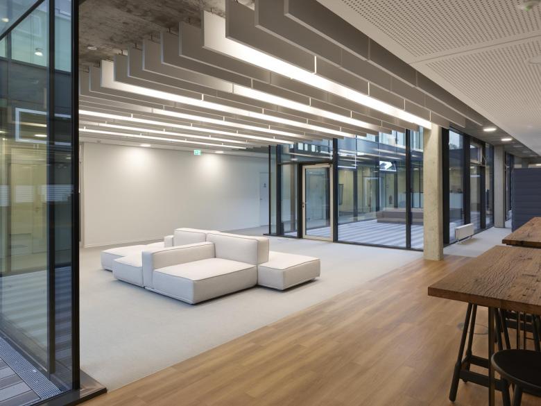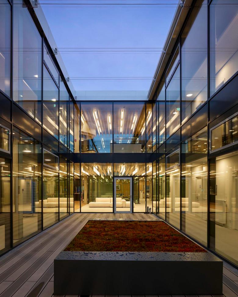 Die sorgfältige Anordnung von Arbeitsplätzen, Fitnessbereich und Mitarbeiterverpflegung im Verwaltungsbereich führen zu einer zeitgemäßen Arbeitsplatzgestaltung für die Mitarbeiter. Das Energiekonzept wurde mit dem Büro Transsolar entwickelt und auf die Gegebenheiten des Ortes individuell abgestimmt. So wird der Gesamtenergiebedarf des Neubaus durch ein innovatives Energiekonzept abgedeckt. Es werden mehrere Komponenten zur Bereitstellung von Wärme und Kälte verwendet. Flächendeckend wird über eine Bauteilaktivierung in den Decken der Wärme und Kühlbedarf des Gebäudes reguliert. Die notwendige Versorgung findet über Fundamentabsorber im Bereich der Tiefgarage und Hochregallagers statt. Eine zusätzliche Wärmeversorgung wird durch eine Holzvergaseranlage abgedeckt.