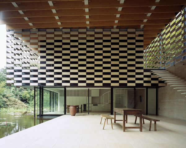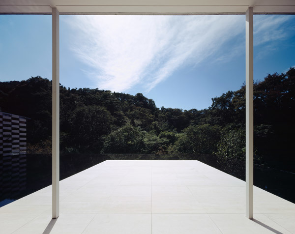 深い山の中の静かな川岸に、この住宅は計画された。川と住宅との間には水をはり、蓮を植え、住まいが蓮池を媒介にして川へ、そして対岸の森へと連続していく状態を作ろうと考えた。