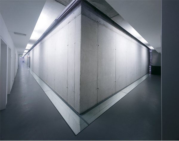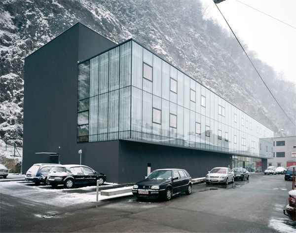 Die architektonische Umsetzung der drei unterschiedlichen Öffentlichkeitsgrade wird in der Wahl des Materials sichtbar: Beton für den geschlossenen Speicherbereich, Glas für den öffentlichen und litexbedrucktes, halbtransparentes Glas für den halböffentlichen Bereich. Diese optische Durchlässigkeit lässt in der Sockelzone Blickbeziehungen zwischen Glockengasse und Kapuzinerberg herstellen und schafft somit eine attraktive Eingangssituation.