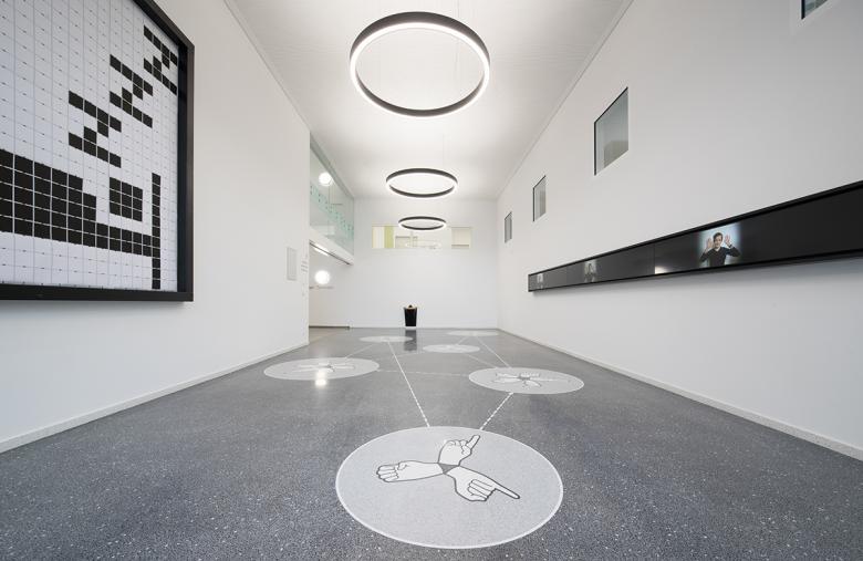 Parallel zur Projektentwicklung fand eine Ausschreibung für Kunst am Bau statt, welche einerseits Franz Bergmüller mit einer großformatigen Collage-Arbeit im Zugangsbereich für sich entscheiden konnte und andererseits Julie Hayward, die gemäß dem Bildungsangebot der Schule Motive in Laut- und Gebärdensprache für einen Terrazzo-Boden im Eingangsfoyer entworfen hat.