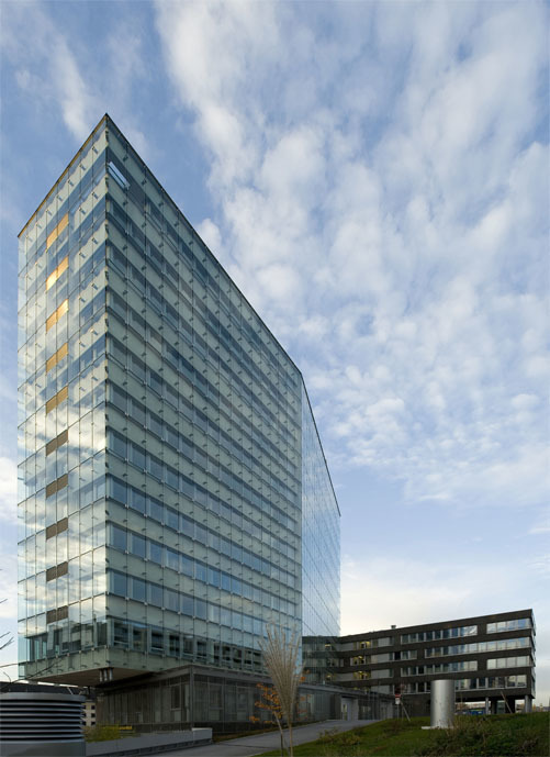 Das 2-schalen Fassadenkonzept sorgt zusammen mit der Bauteilkühlung, einer mechanischen Be- und Entlüftung der Büroräume, jederzeit öffenbare Fenster ohne Windbelästigung, sowie außenliegendem Sonnenschutz für einen äußerst hohen Standard am Arbeitsplatz.