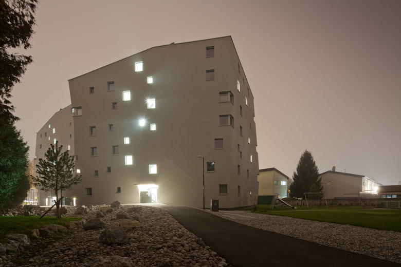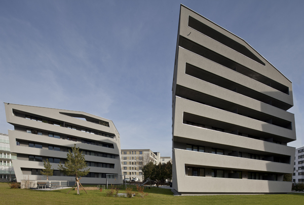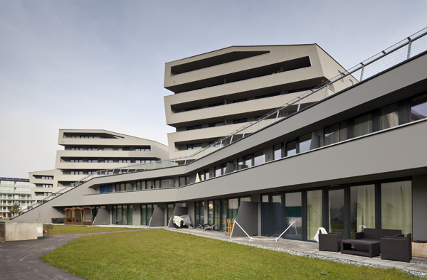 Die schrägen Fassaden der Monolithe verleihen jeder Wohnung einen individuellen Charakter, wie auch die Zusammensetzung der Bewohner des Areals sehr differenziert ist. Wohnungseigentümer und Mieter von 2 – 4 Zimmer Wohnungen teilen sich das Grundstück zusammen mit Personen, welche auf dem Weg einer psychischen und sozialen Rehabilitation von Promente Salzburg betreut werden.