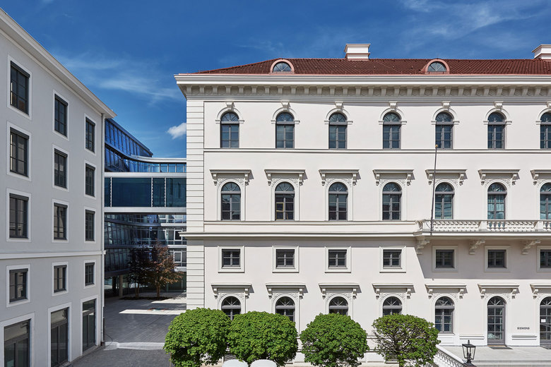 Die neue Konzernzentrale entstand nach dem Entwurf des dänischen Büros Henning Larsen Architects. Die Gebäudearchitektur versinnbildlicht das Selbstverständnis von Siemens als weltoffenes, grünes und transparentes Unternehmen. Auf rund 45.000 m2 Geschossfläche verteilen sich neben dem durchwegbaren Erdgeschoss auf vier Büro- und zwei Dachgeschossen, insgesamt 1.200 Arbeitsplätze. Umweltfreundlichkeit und Energieeffizienz spielen dabei eine besondere Rolle: Der Neubau wird die weltweit höchsten Standards für Nachhaltigkeit erfüllen. Das denkmalgeschützte von Leo von Klenze im 19. Jahrhundert erbaute klassizistische Palais Ludwig Ferdinand wurde nahtlos in den Neubau integriert und steht auch für repräsentative Anlässe zur Verfügung. Der Neubau ist ein Leuchtturmprojekt mit hoher Strahlkraft nach innen und außen. Das neue Headquarter wurde nach der Siemens Aufgabenstellung bewusst nicht als „verschlossenes Gebäude“ konzipiert, sondern wird in weiten Teilen des Erdgeschosses für Gäste, Besucher und Öffentlichkeit frei zugänglich. Restaurants und Cafés mit vielfältigem Angebot sowie eine kostenfreie Siemens-Ausstellung laden zum Besuch ein. Diese Passage eröffnet den Münchnern und Besuchern der Bayerischen Landeshauptstadt einen neuen Fußweg zwischen der Münchner Innenstadt und dem Museumsviertel.