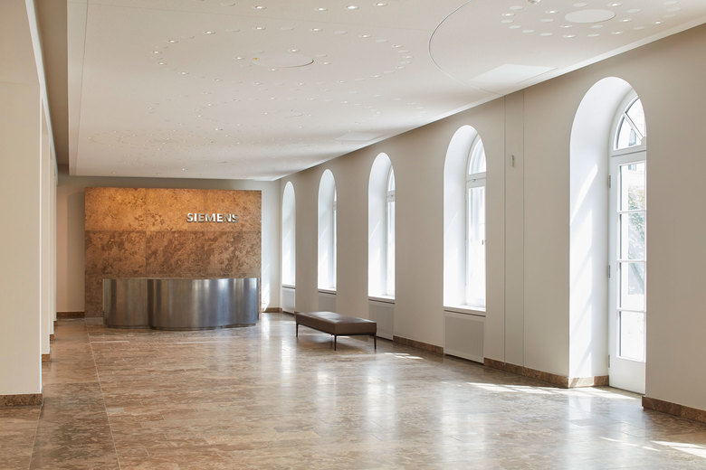 Nach drei Jahren Bauzeit wurde im Juni 2016 die neue Siemens-Konzernzentrale am Wittelsbacherplatz in München offiziell eingeweiht. Landau + Kindelbacher verantworten neben den öffentlichen Bereichen im Erdgeschoss des Neubaus und dem denkmalgeschützten Palais Ludwig Ferdinand in enger Abstimmung mit Henning Larsen Architects das Interior Design.