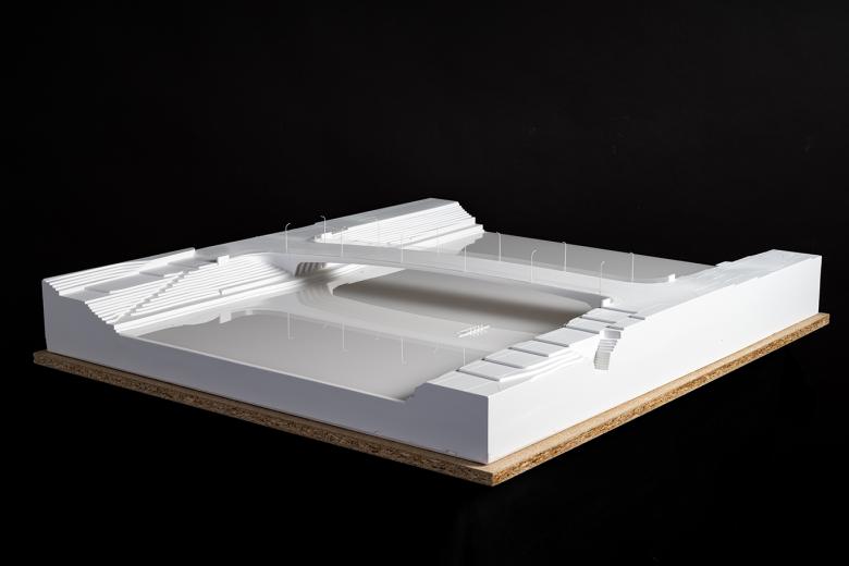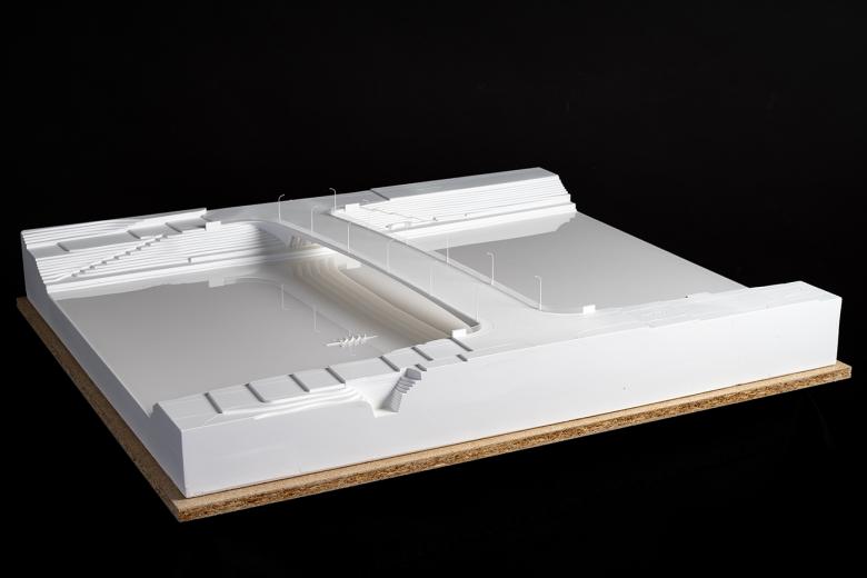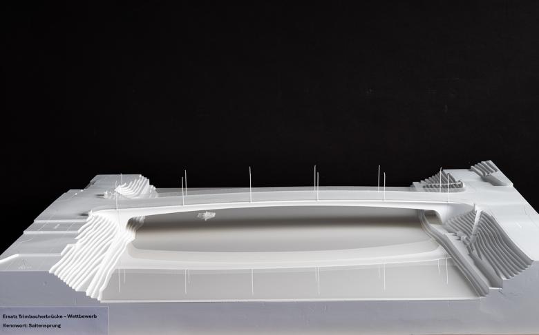 Die neue Trimbacherrücke ersetzt die historische Brücke von E. Froté aus dem Jahre 1914 mit einer vergleichbaren Haltung und Intention, indem in einem einzigen gewölbten Sprung über die Aare gesetzt wird, bei gleichzeitig maximaler Offenhaltung des Brückendaches über dem ökologisch wertvollen Flussraum. Die beidseitigen Brückenenden öffnen sich zu den lokalen Strassen mit ausgerundeten Widerlagern und Geländerarmen bis zu festen End-Pfeilern, die quasi die Geländer optisch festzurren. Der Oltner Uferweg wird Teil des Flussraumes, indem das Widerlager und der Brückenkopf rückversetzt werden. Beim Trimbacher Ufer bleibt die Widerlagerkante dagegen in der Ebene der bestehenden Ufermauern. Mit den oben ausgerundeten Peitschen-Kandelabern wird der Strassenraum über der Brücke in der gleichen Semantik gefasst, wie sie mit dem Rahmentragwerk über dem Flussraum entsteht.