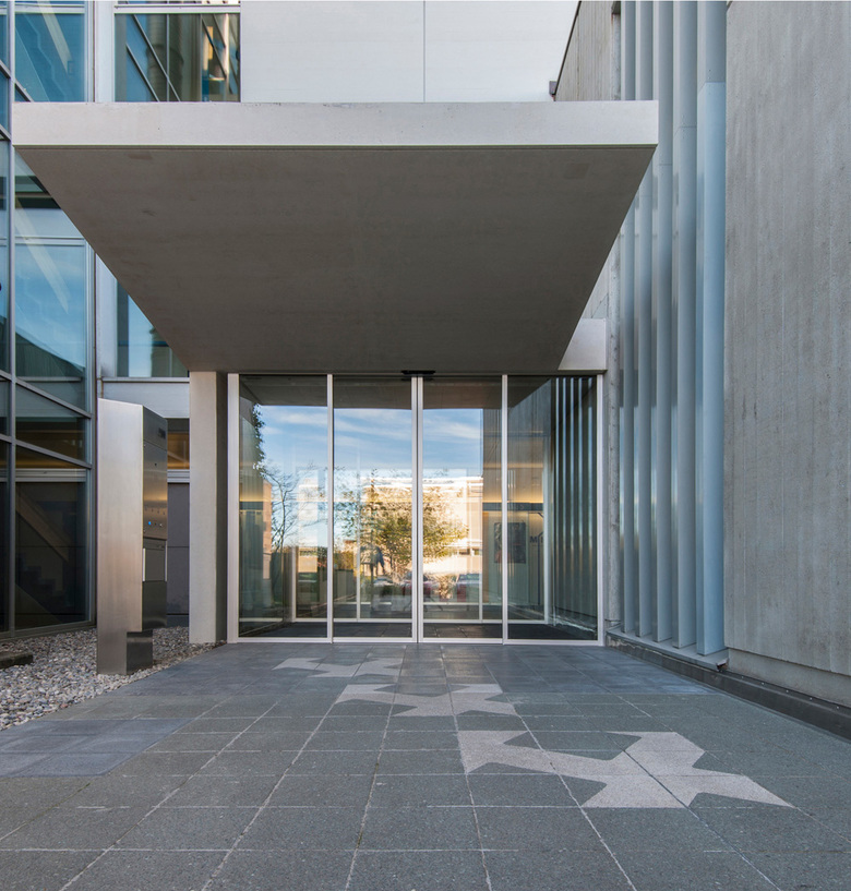 Insbesondere beim Eingang zum Haupttrakt entstand ein neuer Windfang mit Türautomaten und einem grosszügigen Vordach.