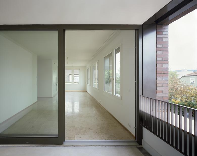 Die beiden sechsgeschossigen Wohnbauten vermitteln geschickt zwischen bestehenden Blockrandfragmenten, Einzelbauten und dem angrenzenden, grossmassstäblichen Einkaufszentrum. Auf dem vormals industriell genutzten Areal entstanden 99 Wohnungen ganz unterschiedlichen Typs und Charakters. Trotz hoher Dichte ermöglicht die Abwinkelung der Baukörper gezielte Ausblicke ins Weite und diagonale Blickbezüge innerhalb der Überbauung. Zudem entstehen mehrdeutige Aussenräume, die spürbar gefasst und dennoch von fliessender Offenheit sind. Während der nördliche Baukörper orthogonal strukturiert ist, sind beim südlichen die Erschliessungskerne leicht ausgedreht, wodurch die Wohnungen an Grosszügigkeit gewinnen.