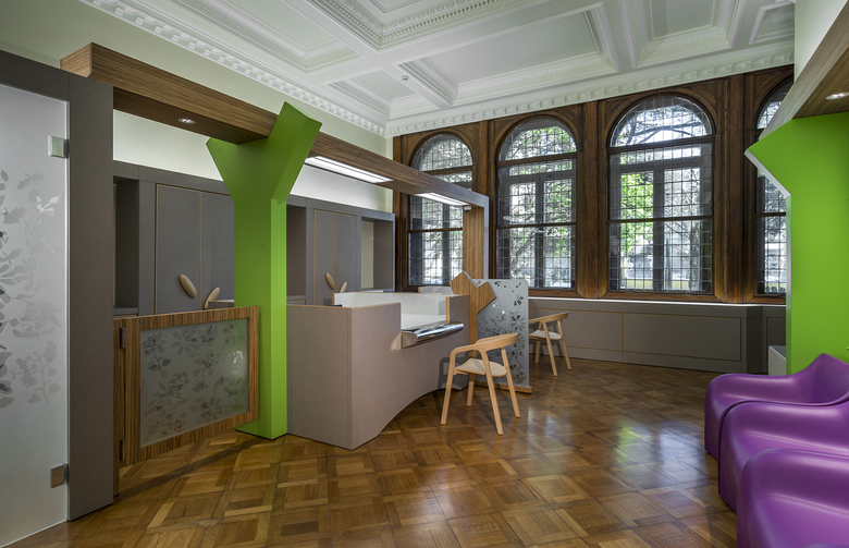 Ne è venuta fuori un’immagine un po’ bucolica, fatta di citazioni floreali e naturalistiche che caratterizza l’intervento, coinvolgendo tutti i piani del fabbricato, dal piano terra al secondo, in una costante ricerca di continuità tra “dentro e fuori”.