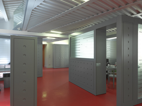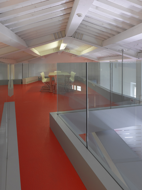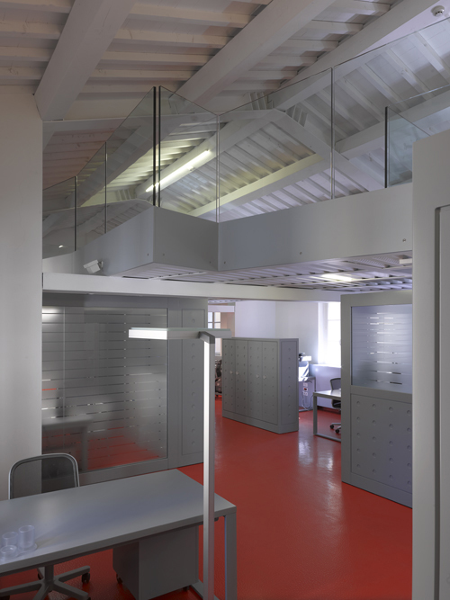 Il progetto consiste nell'ampliamento della sede della Cabel Leasing, nel centro storico di Empoli. Il nuovo intervento si sviluppa su due livelli. Al piano primo si hanno diverse tipologie di postazione operative: si va dal box in vetro, alla postazione binata con armadio basso in testata, alla singola postazione; si alternano disegnando il percorso tra la grande sala riunioni, frutto dell'aggregazione di due ambienti esistenti, e la nuova direzione generale con proprio ingresso autonomo. Su tale zona “galleggia” il soppalco schermato da parapetti in cristallo che riflettono l'ambiente intorno e si riflettono l'uno nell'altro dando origine ad allineamenti e prospettive inattese. In generale il colore usato crea un ambiente fluido e dinamico: i colori neutri grigio e bianco (per gli elementi di falegnameria e la tinteggiatura) ed il non colore (delle parti vetrate) alleggeriscono l'ambiente fortemente contraddistinto, mentre il rosso vivace della pavimentazione in gomma accentua gli elementi di falegnameria nella loro caratterizzazione.