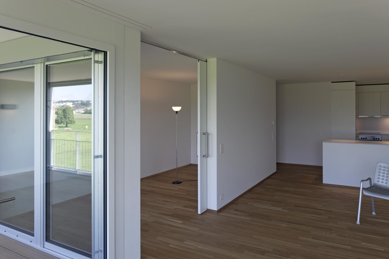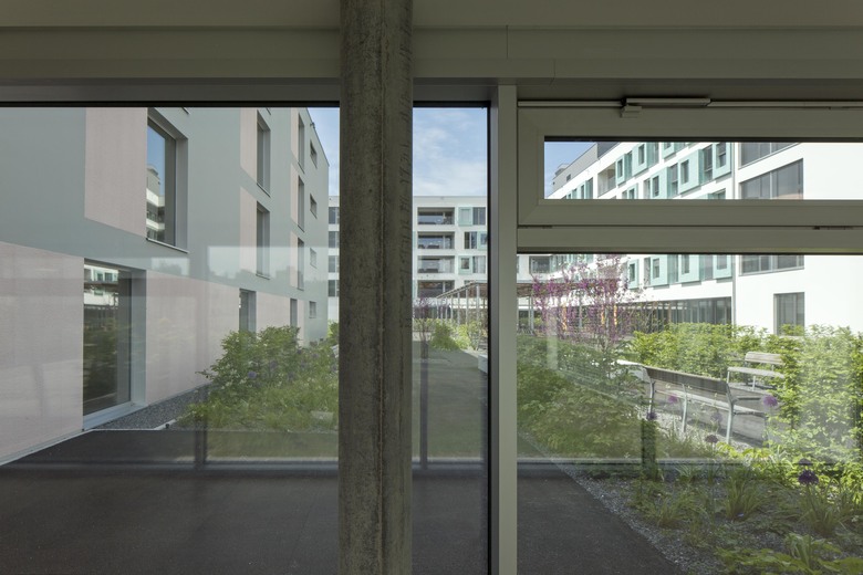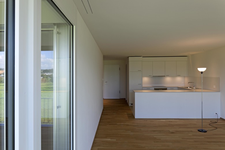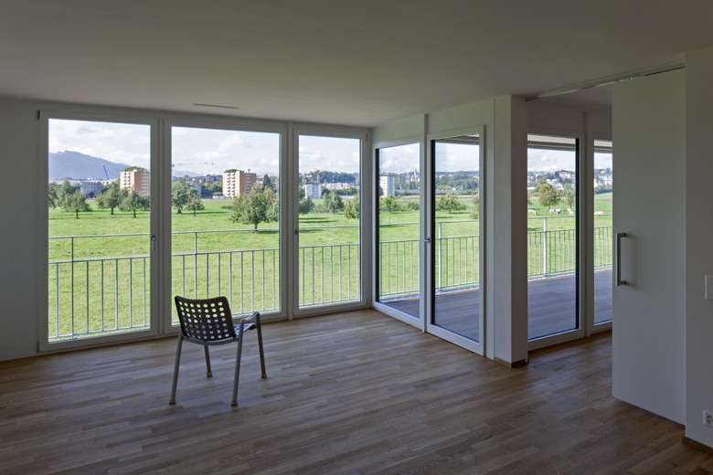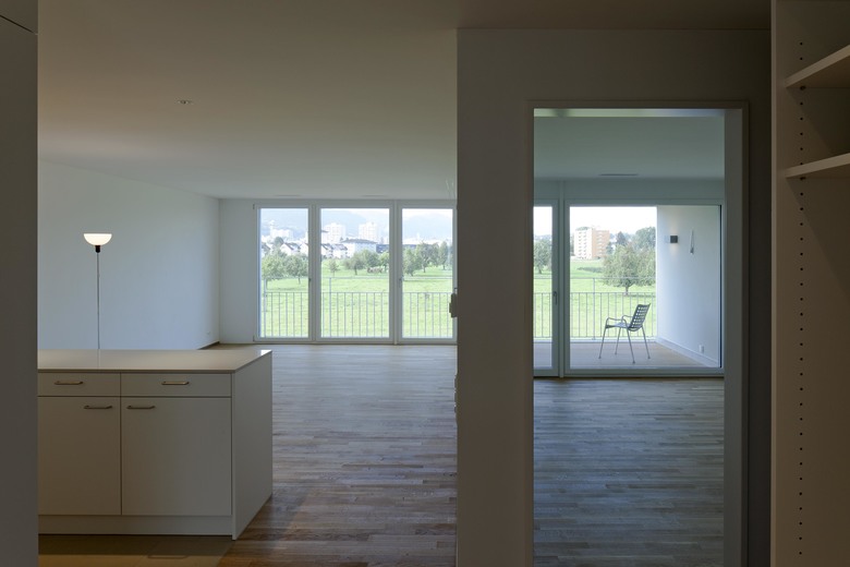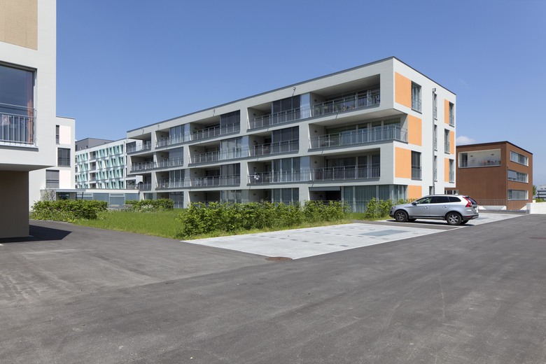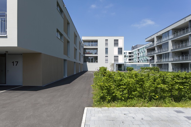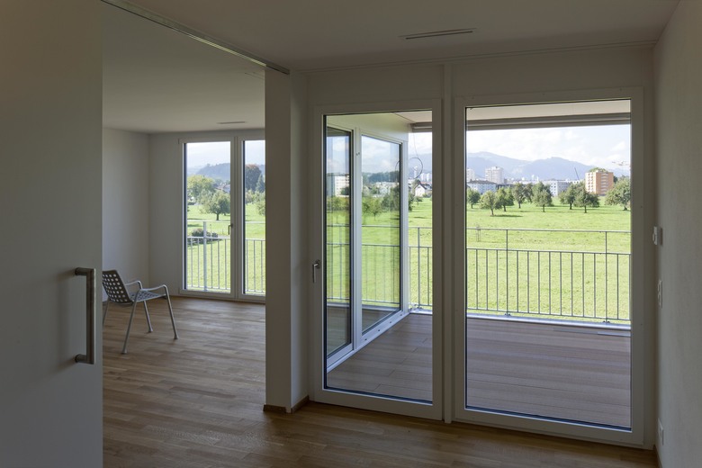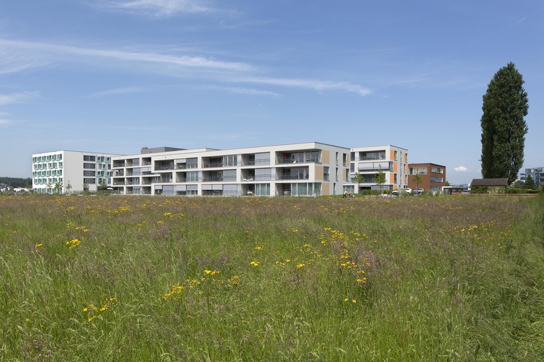 Die Alterswohnungen sind in drei Längsgebäuden angeordnet. Es sind attraktive und gut besonnte Wohnungen mit Aussicht, alle nach Süden ausgerichtet, alle mit einer grosszügigen Loogia versehen. Die Erdgeschosswohnungen liegen im Hochparterre. Die Wohnungen sind über eine eigene Vertikalerschliessung erreichbar; mit einem direkten Zu- gang im Erdgeschoss und in der Parkinggarage.