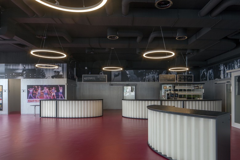Die erfolgreiche und beliebte Musicalbühne "Le Théâtre" plant die Zukunft: Mit dem Umzug nach Emmen kann die Anzahl der Vorstellungen der grossen Musicalproduktionen mit Hilfe einer grösseren Sitzplatzanzahl verringert werden. Darüber hinaus kann das kulturelle Programm mit einem attraktiven Gastroangebot ergänzt werden. Das bestehende, gut erschlossene Zentrum Gersag kann einen grossen Teil des Raumbedürfnisses abdecken. Der neue Nutzung des Hauses wird nach aussen durch eine vorgespannte Membranfassade signalisiert. Diese erinnert an das textile Erscheinungsbild eines Zirkuszelts und verweist damit auf die vergängliche Leichtigkeit und die muntere Frische des Showbusiness. Die Farbe und die Struktur des Bestandes bleiben dahinter erhalten und sind auch in den nicht abgedeckten Bereichen sichtbar, so dass das Haus dennoch im Kontext mit den anderen beiden Bauten, welche den Platz vordem Gemeindehaus definieren, gelesen und erlebt werden kann. Die Foyers werden neu gestaltet. Im Saal wird die Betonbrüstung der Galerie entfernt. Dadurch entsteht, zusammen mit dem Einbau der mobilen Zuschauerpodesterie, ein kontinuierlich ansteigender, zusammenhängender Zuschauerbereich für insgesamt 546 Plätze. Die Tonregie ist in den Zuschauerraum integriert. Die Bühne wird durch ein Podest für die Band ergänzt. Die mobile Konstruktion ermöglicht es auch, die Höhendifferenz zwischen Bühne und Zuschauerraum zu reduzieren, so dass die favorisierten Club-Plätze eine gute Sicht bekommen. Durch den Abbau der Zuschauerpodesterie kann ein Bankettsaal-Zustand wie heute bestehend erreicht werden. Im Untergeschoss wird das Kellertheater zugunsten von Infrastrukturräumen des Theaters aufgehoben.