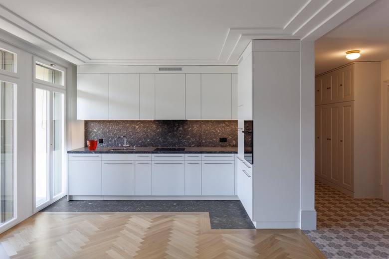 Im Innern hat das Jugendstil-Treppenhaus eine besondere Qualität. Die Wohnungsgrundrisse sind in ihrem Zuschnitt nutzungsneutral gehalten. Der Lifteinbau erfolgt an der Stelle, wo das Treppenhaus am wenigsten beeinträchtigt wird. Betreffend Wohnkomfort entspricht das hundertjährige Gebäude jedoch in vielen Punkten nicht mehr dem heutigen Standard. Zudem ist das Gebäude ohne Lift nicht behindertenkonform. Auf Grund dessen werden wir folgende bauliche Eingriffe vornehmen: