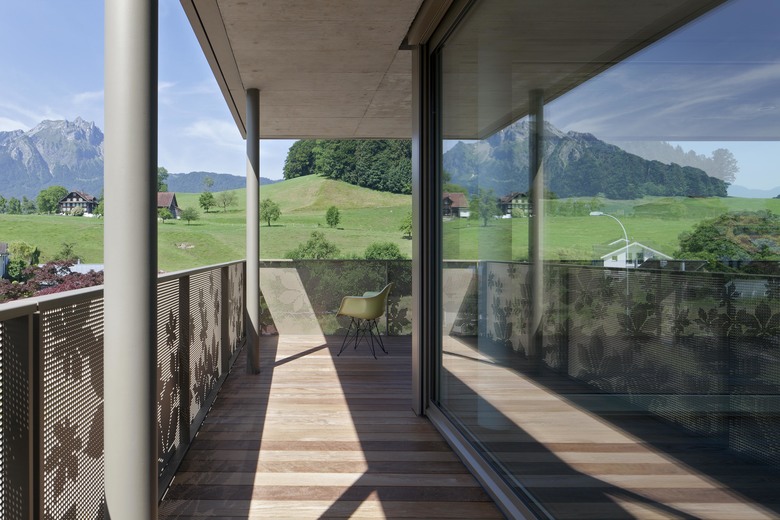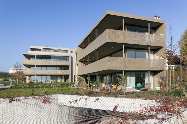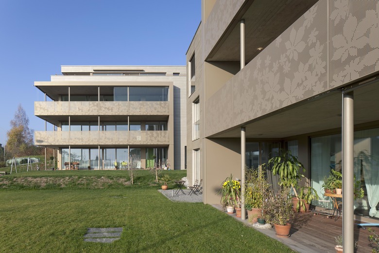 Zwei im Winkel zueinander liegende Gebäude mit zusammen 7 Eigentumswohnungen an der Kastanienbaumstrasse richten sich zur Aussicht und Besonnung und umgrenzen einen gemeinsamen Aussenbereich. Im Haus Nord gibt es zu den 3 4½ Zimmer - Geschosswohnungen noch eine 3½ Zimmer - Attikawohnung. Im Haus Süd gibt es kein Attikageschoss, sondern die 3 Geschosse mit den 4½ Zimmer Wohnungen. Die Raumangebote sind sehr grosszügig. Der längsrechteckige Koch-Wohn-Essräume wird von einer winkelförmigen Terrasse gerahmt. Identitätsstiftend sind die mit Blattmustern gestanzten Balkonbrüstungen. Sie fassen die drei Geschosse zu einer Einheit zusammen und verbinden wiederum die beiden Gebäude miteinander. Die Kompaktfassade ist mit einem horizontal gekämmten Putz verkleidet. Die Metallelemente sind bronzefarben.