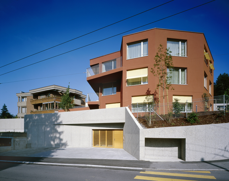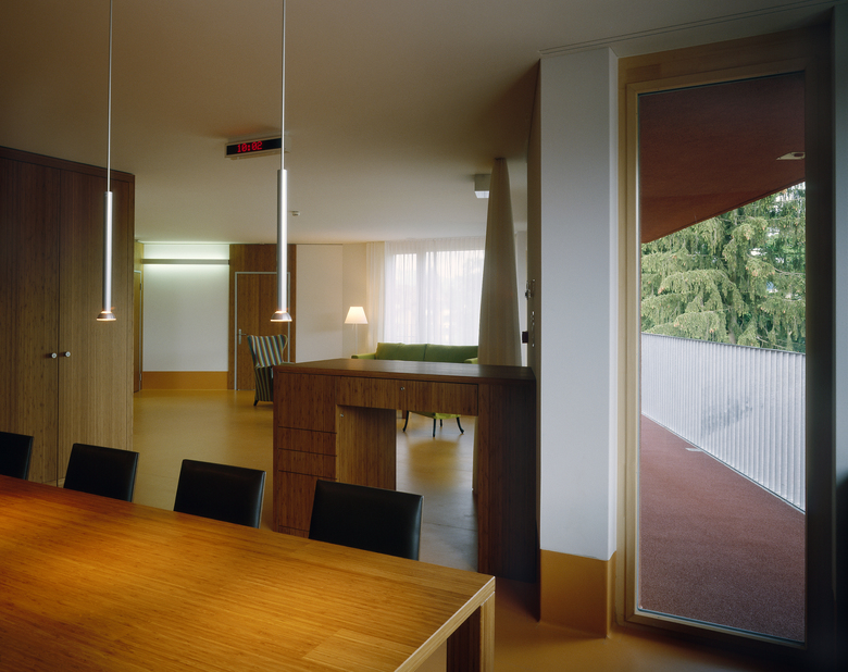 Demenz ein Krankheitsbild, das sich phasenweise verändert und von Jedem individuell erlebt wird. Das Haus ist deshalb eine Art Bühne, auf der sich die Bewohner in allen Phasen wohl fühlen sollen. Im Grundriss äussert sich dies so, dass es keine Korridore oder Sackgassen gibt. Die Räume sind spiralartig um einen Nasszellenkern aufgereiht und fliessen ineinander über. Der Tages- und Sonnenverlauf sind im Gebäudeinnern direkt erlebbar: Die Aufenthaltsbereiche fächern sich von Osten, über die individuellen Zimmer im Süden zu den Aufenthaltszonen im Westen, wo auch der Balkon vorgelagert ist, zur Küche im Norden auf. Über den zentralen Platz vor der Küche findet auch der Brückenschlag zur Sternmatt 89 statt. Von der äusseren Gestaltung wird die Sternmatt 91 ein Ensemble mit dem Mutterhaus.