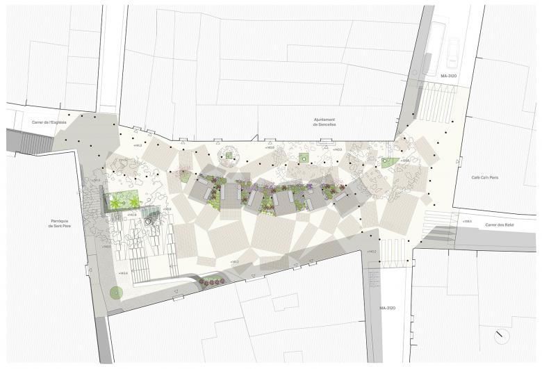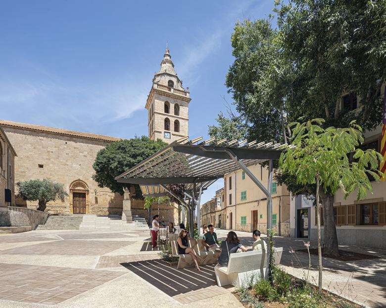 For decades, the main plaza in the center of Sencelles had ceased to function as a vibrant public space, serving primarily as a parking lot. Despite its historical impor-tance and its location among key civic buildings—including the 13th-century Parish Church, Town Hall, post office, and a local café—its role as a social hub had faded.