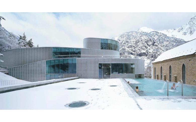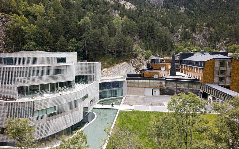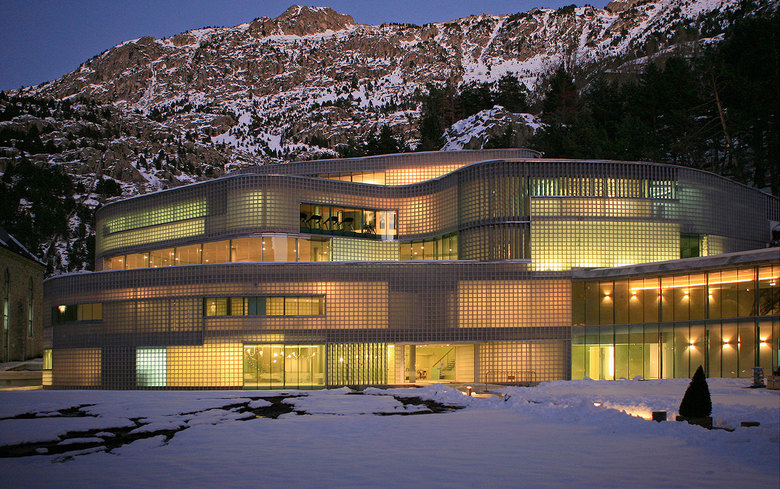 The Baths at Panticosa are located in the dramatic Valle del Tena of Aragon, Spain, where mountain peaks near the project site hold snow throughout the year. Waterfalls, rivers and streams cut the surface of the mountains and the valleys, while underground the aquifer mixes with thermal springs from deep beneath the surface of the earth. The project highlights the idea that contemporary architecture must pay better attention to the environment and natural resources that surround the project.
