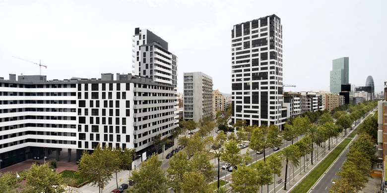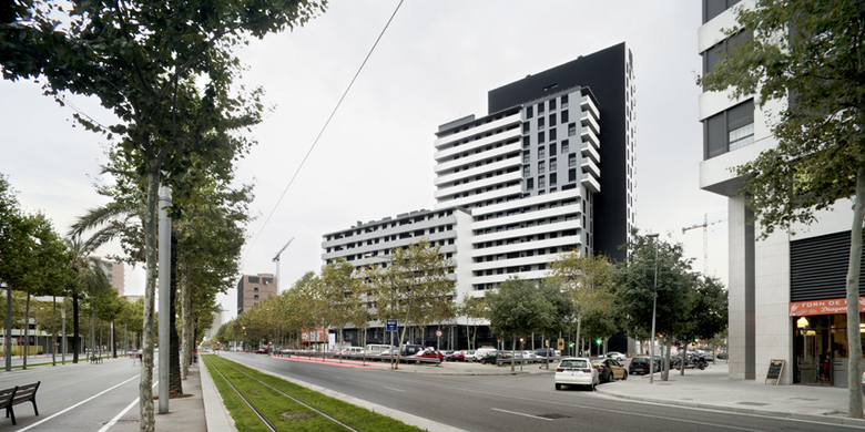 El edificio se desalinea del frente a la Diagonal adelantando la rotura de la fachada norte de la avenida. El pliegue y la pérdida de alineación de los edificios permiten ampliar la anchura libre de la sección de la avenida, propiciando entradas de luz y de sol imposibles de obtener con su sección habitual.