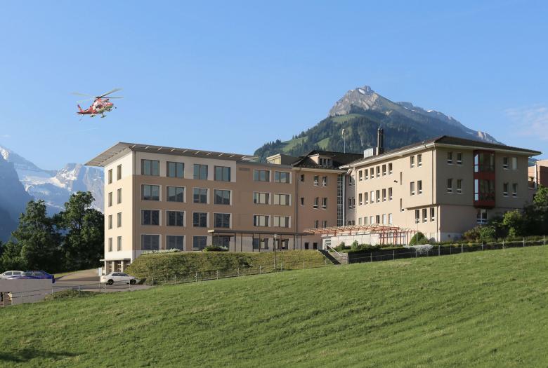 Im viergeschossigen Neubau sind verschiedene Nutzungen untergebracht: Rettungsdienst, Ambulante Psychiatrie, Helikopterlandeplatz, Spitex-Räumlichkeiten, Pflegeheim und Alterswohnungen.
