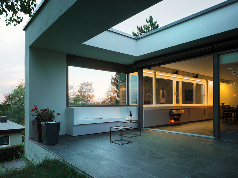 Umbau und Erweiterung eines Wohnhauses mit Flachdachservitut aus den 60er Jahren.