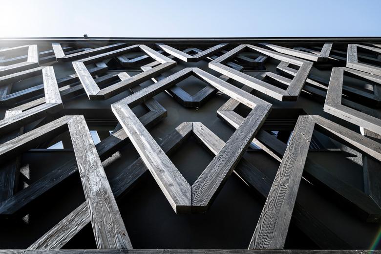 The new garden suites were constructed on the hotel’s East-facing side: three independent buildings with a total of 18 guest rooms across three floors. The saddle roofs absorb the architectural language of their surroundings and the façade blends tradition with modern aesthetics. The buildings’ outer shell has been deliberately kept dark in an ode to the traditional character of a barn house. Meanwhile, a wooden rhombus pattern - created as a transformation of classic wooden struts - gives the three buildings an unmistakably modern flair.