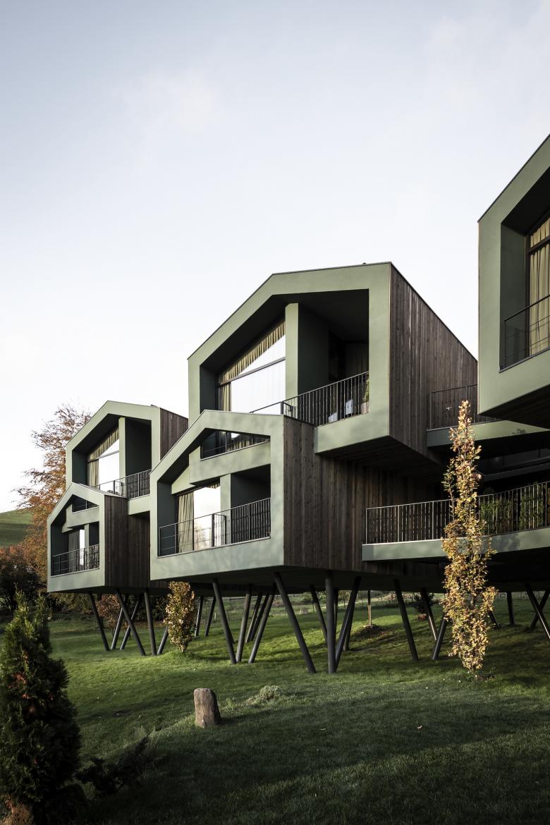 The coherent interior colour concept, the consistency of architectural touches such as the soffits of the suites clad in larch wood, and the discreet but deliberate irregularities of the tree houses enhance the quality of stay for guests at the Florian Hotel. The enthusiasm of the architects is palpable in every detail and will find its resonance in visitors, who despite of the new structure will be able to take full advantage of the park, which has been the guiding principle for this project from the very beginning.