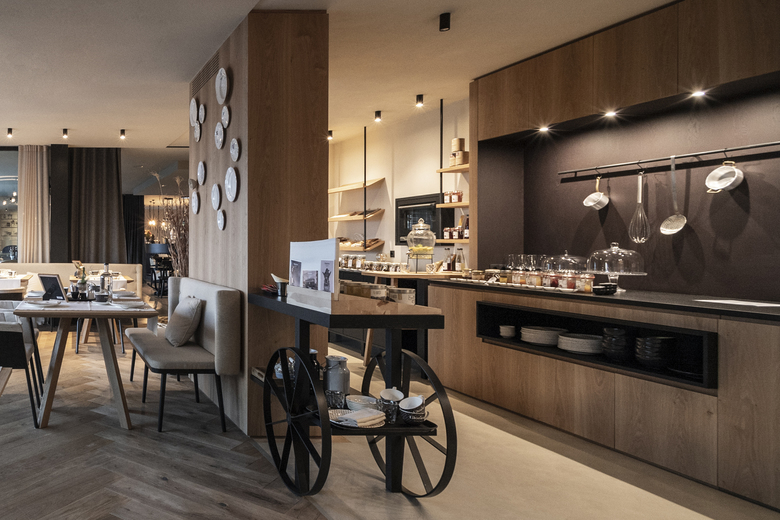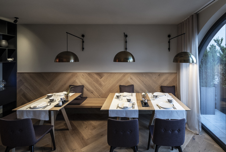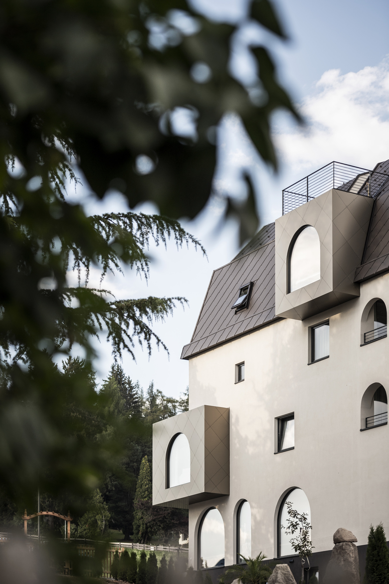 The former small hotel business Bergfink, which was an anchor point in the village structure and nestled amidst the rural-urban structure with all its bourgeois domiciles, built by wealthy Bolzano merchants around the turn of the century, was demolished and a new jewel was created in its place. As the name suggests, it is a gem in the landscape, inspired by the architectural typology in timelessly, elegant Art Nouveau. With the feeling of an era in which, - not at all pompous - the architecture of the city in a simplified form and without giving up completely on luxury and comfort on the Ritten transposed - generous, classic, simple, but not sober.