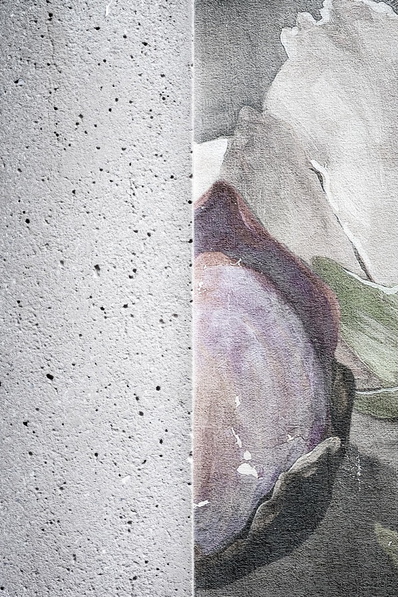 The floors are overlaid with a continuous resin coating. Using cement and resin overcomes the need for joints, giving the surfaces more room to breathe. The two materials are perfectly combined even chromatically, without ever melding into one another thanks to the use of different textures (cement is coarse while resin is smooth).