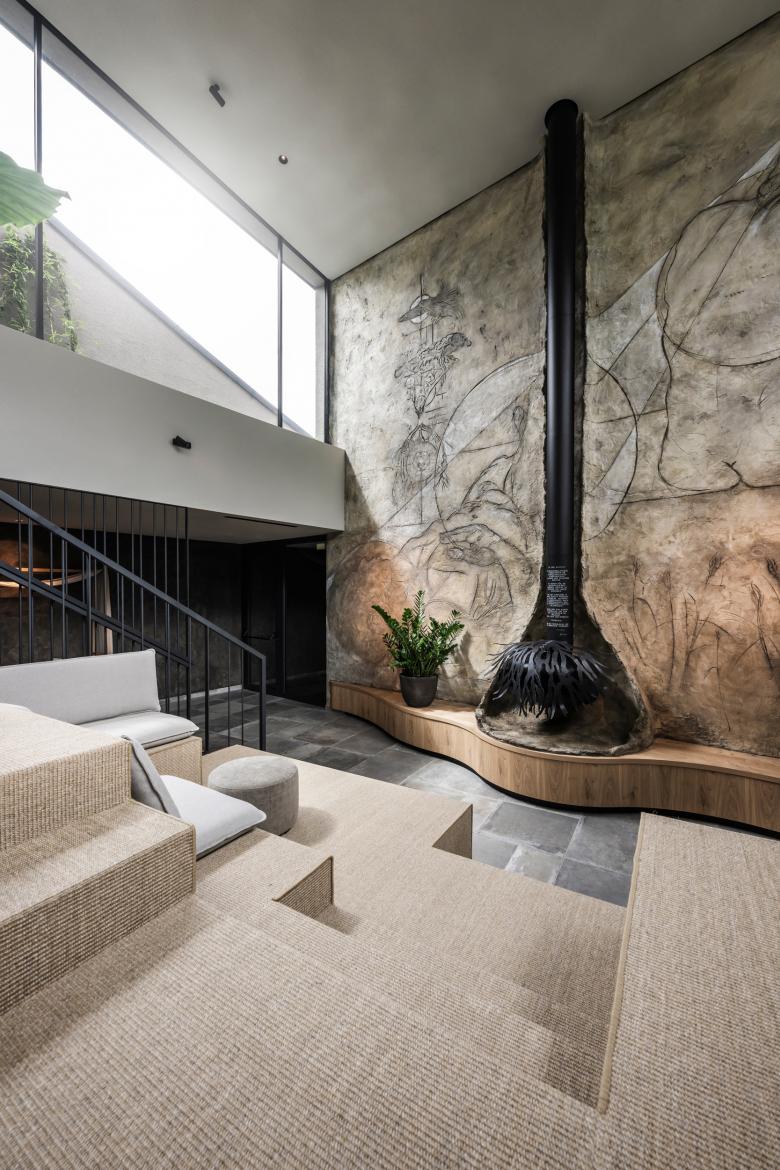 “In the interior, we played with the four elements: fire, air, earth and water are reflected in different forms in each of the rooms.” – Regina Traar, interior designer.